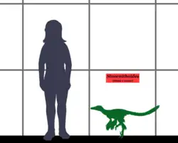 Sinornithoides is a troodontid, a group of small, bird-like, gracile maniraptorans. All troodontids have many unique features of the skull, such as closely spaced teeth in the lower jaw, and large numbers of teeth. Troodontids have sickle-claws and raptorial hands, and some of the highest non-avian encephalization quotients, meaning they were behaviourally advanced and had keen senses.[4] In 2010, Gregory S. Paul estimated its body length at 1.1 metres, its weight at 2.5 kilogrammes.[5]