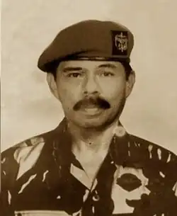Sintong Hamonangan Panjaitan (born 4 September 1940) is a retired Indonesian army officer who graduated from the National Military Academy in 1963. Military Advisor to President BJ Habibie, Secretary for Development Operational Control of Kodam IX/Udayana, and Danjen of Kopassus. He received 20 operation orders at home and abroad during his military career.[1] He was removed from his position as regional military commander due to the Dili incident at the Santa Cruz cemetery in 1991, which causing the decline of his career in the military before retiring with the rank of lieutenant general.[2]