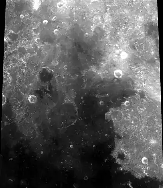 At the southern egress where the bay joins the mare lies Mons Esam, a minor rise that lies among several small lunar domes.