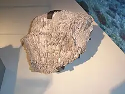Siphonodendron is an extinct genus of colonial rugose corals common during the Carboniferous period. In fossil form it now appears as a white or brown mass of short spaghetti-like threads, usually flattened during distortion of the embedding limestone. It is in the sub-class Hexacorallia of corals with sixfold symmetry.