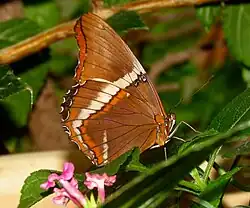 Siproeta epaphus, the rusty-tipped page or brown siproeta,[1] is a New World butterfly that lives all year in tropical habitats. It has large wings, averaging 7.0–7.5 cm (2.8–3.0 in),[1] that are black in the inner portion of the top surface and brown throughout the underside. Both surfaces have a bold white transverse stripe continuing across both wings. The outer portion of the forewings, beyond the white stripe, is rusty orange in the widespread subspecies S. epaphus epaphus; it is mostly or entirely black in the other two subspecies. S. epaphus is found throughout Central America, where it is one of the most common butterflies. Its range extends from southern North America to central South America. The range includes (though may not be limited to) south Texas and rarely southern New Mexico south through both eastern and western Mexico to the Guyanas, Brazil, Bolivia and Peru.[2]