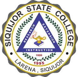 Siquijor State College is the only state college in the island province of Siquijor, Negros Island Region, Philippines. The province is situated 30 kilometres (19 mi) east of Negros Island, and 565 kilometres (351 mi) from Manila.