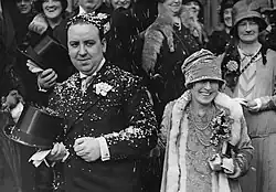 Hitchcock and Reville on their wedding day, Brompton Oratory, 2 December 1926