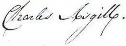 Possibly with a view to Asgill’s noted disapproval of the war in America in mind, Patience Wright, a New York-born sculptor of wax figures in London, wrote, in a letter to Benjamin Franklin, sometime after 7 March 1777: "A letter to Sir Charl[e]s Asgall [sic] on the afairs [sic] of stocks, a Letter from The Emperor [of] Germany or Some truths Properly Stated to the alldmen [sic] in London And a Letter to Ld. Temple or G[e]orge Germain would at this time have a blessed good effect".[6][7]