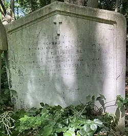 He died in 1926 and was buried in a family grave on the eastern side of Highgate Cemetery. He was succeeded in the baronetcy by his oldest son, John.[8]