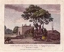 He married Selina, Lady Ranelagh, on 30 November 1755 at West Dean. She was the widow of Arthur Cole, 1st Baron Ranelagh, and the daughter of Peter Bathurst, of Clarendon Park, Wiltshire. Her mother, Bathurst's second wife Lady Selina Shirley, was the daughter of Robert Shirley, 1st Earl Ferrers.[1] He built a mansion called "Elvills", now known as Castle Hill, in Englefield Green, Egham, Surrey between 1758 and 1763. It was designed by Stiff Leadbetter.