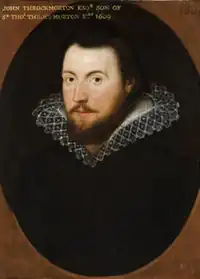 John Throckmorton Esq.r son of Sr. Thos. Throckmorton Knt. 1609. John Throckmorton, Esq., floruit 1609, father of Sir Robert Throckmorton, 1st Baronet (1599–1650). Unknown artist, English, dated 1609. Throckmorton Collection, Coughton Court, Warwickshire. Property of the National Trust, NTPL ref. no. 153609