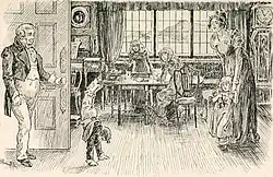 ![]() Sir Robert and Lady Williams at Fryars. A visiting child Henry Keppel entertains them with a handstand. | |