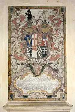 He died unmarried in Rome on 16 January 1739 aged sixty-five, and was buried in the Venerable English College, in Rome (San Tommaso di Canterbury (Rome)), where survives his monument sculpted by Della Valle (1698-1768) and Ferdinando Fuga (1699 – 1782).[11] He left an endowment to be administered by the "de Propaganda Fide" college in Rome to support to English students as Roman Catholic missionaries in Rome.[6]