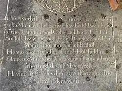 Felton died at his lodgings in Whitehall from gout in the stomach on 3 March 1709.[2] He was buried six days later at St Mary's church Playford, where his gravestone lies in the chancel. His daughter Elizabeth married John Hervey, 1st Earl of Bristol.