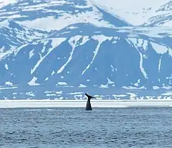 A major seabird colony is located in the area of Baillarge Bay. Seabird colonies are also located on Bylot Island which have a large colony and nesting area of greater snow geese.[3][4] More than seventy species of birds have been recorded here, of which about forty are known to breed.[4] The park is known to be an important bird sanctuary.[16] In 1965, Bylot Island enclosed within the park was also declared as a "Migratory Bird Sanctuary" in view of the large number of migratory birds in the area. A record 100,000 birds are reported to pass the park during summer months every year, and the large geese population of the island is known to constitute the most abundant herbivores of the island.[1] On some of Bylot Island's rugged cliffs within the park, thousands of nesting birds can be found including 300,000 thick-billed murre and 80,000 black-legged kittiwake.[17]