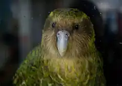 Sirocco (hatched 23 March 1997)[1] is a kākāpō, a large, flightless, nocturnal parrot, and one of the remaining living individuals numbering only 244 (as of 2024).[2] He achieved individual fame following an incident on the BBC television series Last Chance to See in which he attempted to mate with zoologist Mark Carwardine. Subsequent featuring of the incident on television channels around the world and on YouTube resulted in Sirocco becoming internationally known. In his home country of New Zealand, Sirocco has attracted thousands of people during "personal" appearances, and in January 2010 was given the title of Official Spokesbird for Conservation by Prime Minister John Key. In this role, Sirocco helps advocate for conservation through human intermediaries on social media sites and blogs.