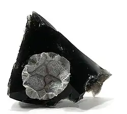 Cristobalite on obsidian, found near Lava Beds National Monument