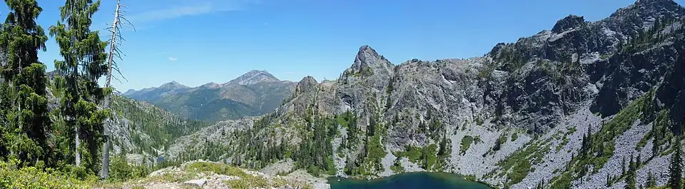The Siskiyou Mountains are a coastal subrange of the Klamath Mountains, and located in northwestern California and southwestern Oregon in the United States. They extend in an arc for approximately 100 miles (160 km) from east of Crescent City, California, northeast along the north side of the Klamath River into Josephine and Jackson counties in Oregon. The mountain range forms a barrier between the watersheds of the Klamath River to the south and the Rogue River to the north. Accordingly, much of the range is within the Rogue River – Siskiyou and Klamath national forests, and the Pacific Crest Trail follows a portion of the crest of the Siskiyous.