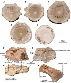 Fischer et al. (2014) designated CAMSM B58257_67 as the holotype of Sisteronia. It is one of the most complete specimens from the Cambridge Greensand member, representing an incomplete, articulated skeleton, including a partial basicranium (the inferior portion of the skull), a scapula, a humerus, and five centra.[1]