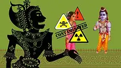 The voices are clearly contemporary and somewhat irreverent, unlike their visualisations, which further establishes the theme of contrast between "ancient tragedy and modern comedy";[6] Chhaya Natak shadow theatre, for example, was commonly used in retellings of the Ramayana.[7]
