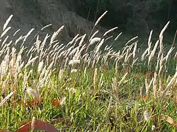 The forests of the region are known to be evergreen type with a preponderance of deciduous species with a levelled distribution.[128] The topmost level consists of Garjan (Dipterocarpus alatus), Telsur (Hopea odorata), Chapalish (Artocarpus chaplasha), Chundul (Tetrameles nudiflora) and Koroi or the Moluccan albizia (Falcataria moluccana). The lower level consists of species of Jarul (Lagerstroemia speciosa), Toon (Toona ciliata), Jam (Syzygium cumini), Jalpai (Elaeocarpus robustus) and Glochidion. Lianas, epiphytes (mostly of orchids, asclepiads, ferns and leafy mosses) and herbaceous undergrowths are abundant.[128] Savannah formations are found in the open, along the banks of rivers and swamps with common tall grasses like Kans (Saccharum spontaneum), Shon (Imperata cylindrica and I. arundincca) and Bena (Vetiveria zizanoides).[128] Several species of Bamboo are cultivated that are common in Bangladesh including Bambusa balcooa (which is also common in Assam), B. vulgaris, B. longispiculata, B. tulda and B. nutans; the latter two also being common in the hills of the region.[129]
