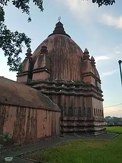 Shiva dol (meaning the temple of Shiva) is a group of structures comprising three Hindu temples of Sivadol, Vishnudol (temple of Vishnu) and Devidol (temple of Durga in the local Assamese language) shrines, and a museum. These are located on the banks of the Sivasagar ("the ocean of the god Shiva") tank, also known as the Borpukhuri tank, in the heart of Sivasagar, in the Indian state of Assam. The tank was constructed between 1731 and 1738 and the temples were built in 1734 by Bar Raja Ambika, queen of Ahom king Swargadeo Siva Singha (1714–1744).[1][2][3][4][5] The height of the Sivadol (dol means temple in Assamese) is 104 feet (32 m) and the perimeter is 195 feet (59 m) at the base. It is crowned with an 8-foot (2.4 m) high golden-dome.[1]