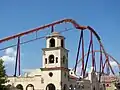 Two new thrill rides were added to the park for the 1997 season. Giant Drop, a 227 feet (69 m) tall Intamin second-generation drop tower, was added as an expansion to the Southwest Territory area, and was themed to be an ore excavator in the fictional Loco Diablo Mine. The other ride, Dare Devil Dive, was a Skycoaster ride and would be located in the County Fair area. Both attractions opened on April 26, 1997.[84][85][86] By this time, construction on the back side of the Southwest Territory mission building was fully completed.[77]