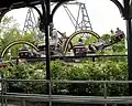 In 1985, Six Flags added Z-Force to the County Fair area, a one-of-a-kind Intamin space diver roller coaster.[48] The Edge was removed in 1986.[49] In 1987, the park received one new ride and a themed area expansion. Power Dive, an Intamin Looping Starship ride was added.[50] It was a ride swung back and forth before eventually rotating a complete 360 degrees a few times.[51] Additionally, the Bugs Bunny Land kids area was expanded.[50] Z-Force was removed from Six Flags Great America after the 1987 season, two years after it first operated.[52] It was relocated to Six Flags Over Georgia.[53]