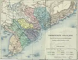 The Six Provinces of Southern Vietnam (Vietnamese: Nam Kỳ Lục tỉnh, 南圻六省 or just Lục tỉnh, 六省) is a historical name for the region of Southern Vietnam, which is referred to in French as Basse-Cochinchine (Lower Cochinchina).[1] The region was politically defined and established after the inauguration of the Nguyễn dynasty, and called by this name from 1832, when Emperor Minh Mạng introduced administrative reforms.