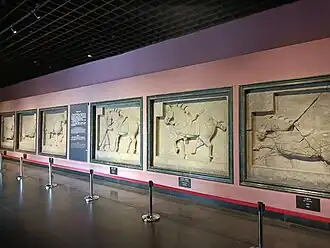 The Six Steeds of Zhao Mausoleum (simplified Chinese: 昭陵六骏; traditional Chinese: 昭陵六駿; pinyin: Zhāolíng Liùjùn) are six Tang (618–907) Chinese stone reliefs of horses (1.7m x 2.0m each) which were located in the Zhao Mausoleum, Shaanxi, China. Zhao Mausoleum is the mausoleum of Emperor Taizong of Tang (r. 626–649).