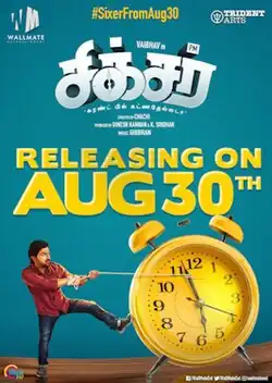 Sixer is a 2019 Indian Tamil language romantic action comedy film written and directed by Chachi, marking his directorial debut. The film stars Vaibhav and Palak Lalwani, with Sathish and Radha Ravi playing the supportive roles.[1] M. Ghibran composed music for the film while cinematography was handled by P. G. Muthiah.[2] The story of Sixer follows a person with night blindness, who faces difficulties in routine and love life because of his condition. The film was theatrically released on 30 August 2019.[3] The film received positive reviews from critics.[4]