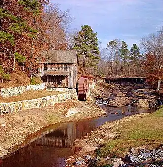 Sixes, home to approximately 14,540, is an unincorporated community in western Cherokee County, Georgia, United States, located about three miles west of Holly Springs and near the eastern shore of current-day Lake Allatoona. The community is located in the Georgia Gold Belt, which runs southwest to northeast along the southern edge of the Blue Ridge Mountains.[1] The Sixes Gold Mine, a now-defunct gold mine dating back to the early 19th century, was located just to the northwest.[1] In addition, the community is home to the Sixes Mill, which was originally built around 1820 by early gold prospectors and later rebuilt circa 1880. The mill has been well preserved and is still located off Sixes Road. There are two theories on how Sixes derived its name. The first theory attributes the name to Fort Hinar Sixes, a Cherokee Indian removal fort that was located in the area along the Trail of Tears. The second holds that the name is derived from an old Cherokee village that was located near the Etowah River named "Sutali" — the Cherokee word for the number six. Sixes also lent its name to Fort Sixes, an 1830s US Army fort that served as a removal collection point for Cherokee prior to the Trail of Tears. Sutallee, a community that sits on the opposite side of the Etowah River (now Lake Allatoona) in western Cherokee County, also derives its name from this Native American village. Today, Sixes is a growing suburban community with many large, upscale residential neighborhoods, including BridgeMill. The area is served by two elementary schools (Sixes & Liberty); one middle school (Freedom); and two high schools (Woodstock & Cherokee).