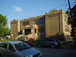 Dow Elementary School moved to its Old Sixth Ward location at 1900 Kane Street in 1912 and closed in 1991-1993.[16][17] The afterschool program Multicultural Education and Counseling through the Arts (MECA) is located in the former Dow building.[18][19] HISD began leasing the Dow building, which had been constructed in 1912, to MECA in 1993, charging MECA $1 per year for a 15 period frame. As part of the agreement, MECA began enacting renovations so the building can meet current life safety and accessibility codes. MECA received the title to the Dow building in 2004.[19] The building also houses the Houston GLBT Community Center.[20] Dow was named after Justin E. Dow. Dow was superintendent of Houston Public Schools from 1885 to 1887 and had served as the principal of Houston High School from 1882 to 1885.[21]