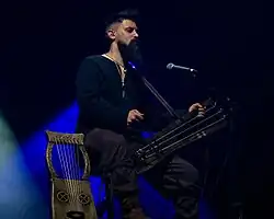 The band uses a variety of instruments from the Norse tradition, dating back to the 14th century.[37][38] Among the instruments the group has employed, their repertoire numbers, among others, shamanic drums, lyre, talharpa, citole, jouhikko, and nyckelharpa.[2]