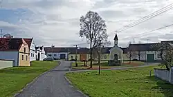 Budičovice is protected as a village monument zone for its folk architecture from the 19th century. The homesteads have decorated façades in the Folk Baroque style, typical for this region. The landmark of the village green is the Chapel of Saint John of Nepomuk from around 1875.[4]