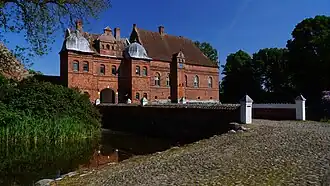 Skaføgård is a manor house in the parish of Hvilsager in Syddjurs Municipality in the eastern Jutland peninsula of Djursland, Denmark. It is not one of Denmark's largest manor-houses, but one of the best preserved. Inside there is an enormous oak closet carved by the Dutch carpenter Mikkel van Gronningen whose most famous work is the pulpit in Århus Cathedral. The closet covers 13 m2 (140 sq ft) of wall space and, in view of its rich detail, is considered to be one of the most outstanding examples of carved wooden Renaissance furniture in Northern Europe.[1][2]