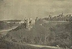 Geographically the town is located in western Podolia, hence the name. It is located not far where Zbruch falls into Dniester. The town is first mentioned after its fortress that was built in 1360s - 1370s. After the Kingdom of Galicia-Volhynia was torn apart between the Kingdom of Poland and the Grand Duchy of Lithuania, the city was secured by the Lithuanian family of Koriatovychi, but later in the 15th century it was passed to the Polish Crown with which it stayed except Ottoman rule between 1672 and 1699 until the First partition of Poland in the late 18th century. During Ottoman times, it was nahiya centre in Kamaniçe sanjak of Podolia Eyalet as İskala.[4] After this partition, it became part of the Habsburg monarchy except brief Russian rule between 1809 and 1815. Because of this precarious location, it has a history of ethnic diversity and has been, during periods of war or political unrest, particularly susceptible to turmoil.[5][6][7]