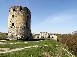 The castle was erected in the 14th century by the family of the Prince Koriatowiczów.[2] Then, after 1515, it was significantly expanded by Stanislaw Lanckoroński of Brzezie (1465–1535) of Zadora coat of arms,[2] starosta of Kamieniec, later Sandomierz voivode at the behest of King Sigismund I the Old.[3] The Lanckoronski family owned the castle until 1706. Then the owners were the Tarłows. All that remains of the castle, which occupied the entire promontory, is a massive 16th-century tower, standing at the base of the promontory.