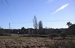 In September 1980, the Stockholm Municipality decided that a large residential area called Skarpnäcksstaden (English: The Skarpnäck City) would be constructed on the airfield.[3] The baseball and greyhound-racing facilities remained and were included in the new residential area, but the greyhound-racing was closed in 2006 in favour of a football field of artificial turf.