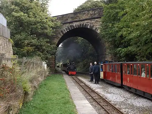 ![]() Skelmanthorpe Station. The bridge carries Station Road over the Whistlestop Valley. | |||||