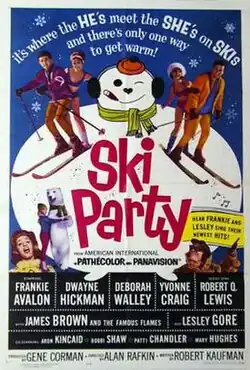 Ski Party is a 1965 American teen musical comedy film directed by Alan Rafkin and starring Frankie Avalon and Dwayne Hickman. It was released by American International Pictures (AIP). Ski Party is considered as a beach party film spin-off, with a change of setting from the beach to the ski slopes – although the final scene places everyone back at the beach.