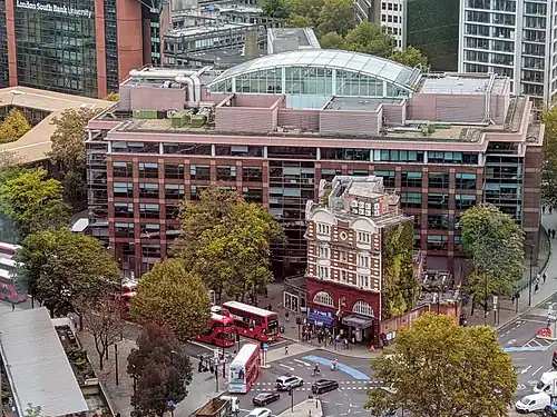 Plans were approved in 2016 to demolish Skipton House as well as the adjacent hostel and London South Bank University Perry Library to make way for a mixed-use development designed by Skidmore, Owings & Merrill containing high-end flats, offices and restaurants.[2] The plans were subsequently withdrawn due to a lack of agreement between the landowners and in 2019 a new planning application was submitted to re-clad and add six more storeys to the existing building.[3] The application was referred back to Southwark London Borough Council by the Greater London Authority on the basis that it "does not comply with the London Plan and the draft London Plan".[4] The GLA suggested possible remedies including contributing towards the cost of a new Elephant and Castle Northern line London Underground station, the developer submitted an updated plan to Southwark London Borough Council which approved it in November 2020 and the plans now await approval by the Mayor of London.[5]