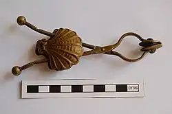 A skirt lifter, also known as a dress lifter, skirt grip, dress suspender, hem-holder, page or porte-jupe, was a device for lifting a long skirt to avoid dirt or to facilitate movement. It clamped on to the hem and was attached to the belt by a cord, ribbon, or chain.[1]