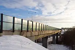 On 2 February 2015, the southbound bridge partially collapsed. No one was injured and both bridges were closed after collapse. The collapse was caused by a landslide in the quick clay surrounding a support pillar.[1] The southbound lane was fully destroyed in controlled explosive demolitions on 21 February and 25 March 2015. The northbound lane was repaired and reopened to two-way traffic on 26 June 2015. The southbound lane was partially reopened on 1 July and fully operational on 4 July 2016,[2] 17 months after the collapse.