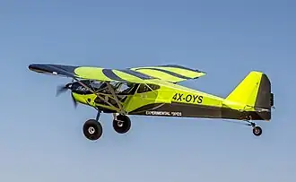 The BushCat is a two-place side-by-side configuration, strut-braced, high-wing monoplane. The main upgrades from the earlier Cheetah XLS are the use of sprung aluminum landing gear, cockpit ergonomic changes to the location of the stick and throttle and hydraulic disc brakes in place of mechanical drum brakes.[1][2]