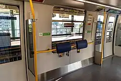 Each Mark I car has 36 seats and a capacity of 80 passengers.[11] Mark I trains have spaces dedicated for wheelchair users, bicycles, and strollers.