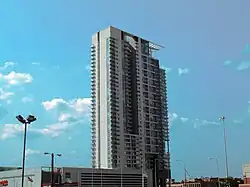 Skybridge is a high-rise luxury condominium located in the West Loop of Chicago. It won the 2003 bronze Emporis Skyscraper Award.[2] The base of the building is home to a Whole Foods grocery store. The building climbs to 38 stories, while the top two are home to the penthouses. The 36th floor contains a workout facility for tenants and a rooftop garden space. The building was designed by Perkins and Will.