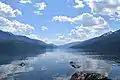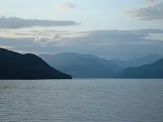 Slocan Lake is a lake in the Slocan Valley of the West Kootenay region of the Southeastern Interior of British Columbia, Canada. With an area of 69.29 km2 (26.75 sq mi) it has a maximum depth of 298 m (978 ft). It is fed by Bonanza Creek and drained by the Slocan River.
