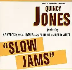 "Slow Jams" is a song by American musician Quincy Jones from his studio album Q's Jook Joint (1995). Written and produced by Rod Temperton, vocals for the song were initially recorded by Babyface, Portrait, Barry White and SWV. A remix version, released in 1996 as the album's second single, replaced the latter's vocals with Tamia. A commercial success, it peaked at number 2 on the New Zealand Singles Chart and reached the top 20 on Billboard's Hot R&B Singles chart. The original version featuring SWV[1] earned a nomination for Best R&B Performance by a Duo or Group with Vocals at the 39th Grammy Awards in 1997.