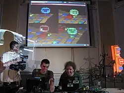 Slub is an algorave group formed in 2000 by Adrian Ward and Alex McLean, joined by Dave Griffiths in 2005 and Alexandra Cardenas in 2017. They are known for making their music exclusively from their own generative software, projecting their screens so their audience can see their handmade interfaces.[1] Their music is improvised, and advertised as falling within the ambient gabba genre.[2][3]