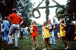 Små grodorna (Swedish for "The Little Frogs") is a traditional Swedish dance and song traditionally performed at midsummer, where the participants dance around the maypole. The dance involves movements that illustrate body parts that frogs lack, namely "ears" (öron) and "tails" (svansar). Occasionally, Små grodorna is also sung at Christmas, but instead of dancing around the maypole, Swedes dance around the Christmas tree.