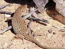 The small-spotted lizard (Mesalina guttulata) is a species of lizard. It is found in the following countries: Morocco, Algeria, Tunisia, Libya, Egypt, Sinai, Israel, Saudi Arabia, Iran (Kavir desert), India, S. Turkmenistan, N. Africa, Afghanistan, Pakistan, Senegal, Niger, Sudan, Syria. Type locality: Egypt.[2]