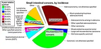 - ^ Qubaiah, O.; Devesa, S. S.; Platz, C. E.; Huycke, M. M.; Dores, G. M. (2010). "Small Intestinal Cancer: a Population-Based Study of Incidence and Survival Patterns in the United States, 1992 to 2006". Cancer Epidemiology, Biomarkers & Prevention. 19 (8): 1908–1918. doi:10.1158/1055-9965.EPI-10-0328. ISSN 1055-9965. PMC 2919612. PMID 20647399.