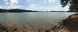 Smith Mountain Lake is a large reservoir in the Roanoke Region of Virginia,[3] United States, located southeast of the City of Roanoke and southwest of Lynchburg. The lake was created in 1963 by the Smith Mountain Dam impounding the Roanoke River. The majority of the south shore of the lake lies in Franklin County while a small portion, including access to the dam, lies in Pittsylvania County. Bedford County makes up the northern half of the lake, with the Roanoke River as the dividing line. The lake has become a popular recreation spot and has also experienced significant development in the last decade. It is the largest lake contained entirely within the Commonwealth of Virginia.